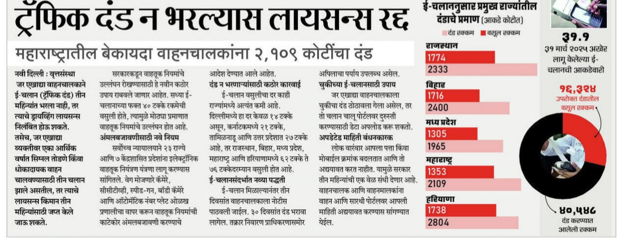 ट्रॅफिक दंड न भरल्यास लायसन्स निलंबित होणार ; काय आहे नवीन नियम Driving Licence